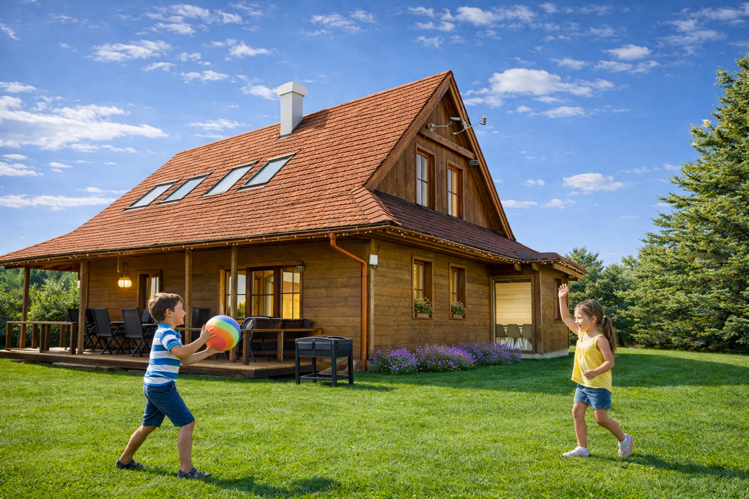 | vonkajšia výbava | krytá terasa so záhradným nábytkom, gril, v lete malý bazén (júl, august) |